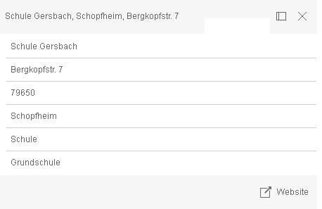 4.) Es öffnet sich ein Ergebnisfenster mit Informationen sowie einem Link zur Bildungseinrichtung.