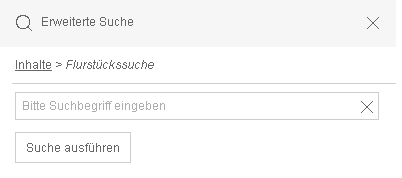 2.) Geben Sie die Gemarkung und die Flurstücksnummer getrennt durch ein Komma ein und klicken Sie auf „Suche ausführen“. Das System zoomt danach auf das Flurstück und markiert es oder zeigt eine Auswahlliste an.