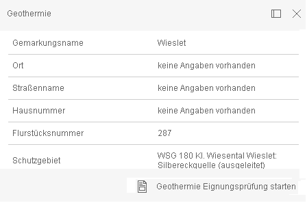 3.) Wählen Sie im Ergebnisfenster "Geothermie Eignungsprüfung starten" an.