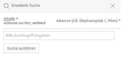 Geben Sie die Straße mit Hausnummer und die Stadt getrennt durch ein Komma ein und klicken Sie auf „Suche ausführen“. Das System zoomt danach auf die Adresse und markiert diese.