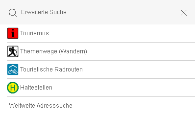 "Erweiterte Suche" und klicken Sie auf "Touristische Radrouten".